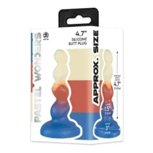 Brighten up your anal play with the Pastel Wonders 4.7" Silicone Butt Plug. This eye‑catching plug swirls creamy white, warm orange and deep blue into a fun pastel design, while its sculpted triple‑bulb shape delivers a series of delicious “pops” as each curve slides in and out.
