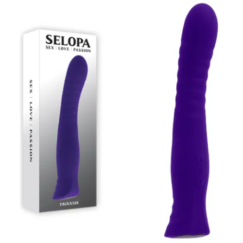 Trixxxie is a beautifully designed, deeply textured vibrator with flexibility in its gently arched shaft and the unique ability to go back and forth between vibration modes without cycling.