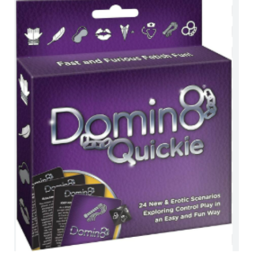 24 New & Erotic Domin8 Scenarios Exploring Control Play in an Easy & Fun Way. Domin8 Quickie is the sequel to the well received Role Playing title Domin8. Providing lovers a compact edition of the game, Domin8 Quickie is a game of Sub/Dom play where couples can easily roll the 8 sided die and match their symbol with a role playing scenario painted just for them.