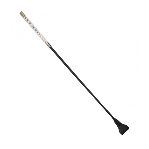 Long crop with diamanté encrusted handle and wide leather tab.