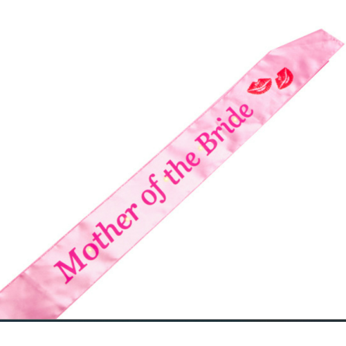 This Pink Flashing Mother of the Bride Sash has the wording 'Mother of the Bride' in hot pink and two red lips mark at the side. The sash has flashing LED lights attached and discreet power switch.