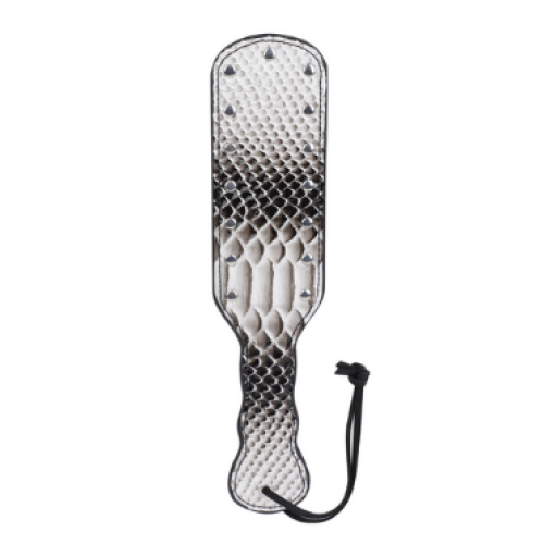 Wrapped in a realistic snakeskin finish, this paddle features metal stud detailing across the striking surface for added weight, presence, and visual edge. The broad paddle head delivers a solid, satisfying sting, while the narrowed handle ensures a secure, comfortable grip.